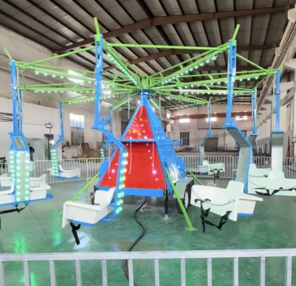 This brand new swing ride seats 3 children per seat or one child and one adult per seat so it can ride 20-30 people at a time. The colorful ride and over 500 colorful LED lights make a crowd pleaser for all ages.